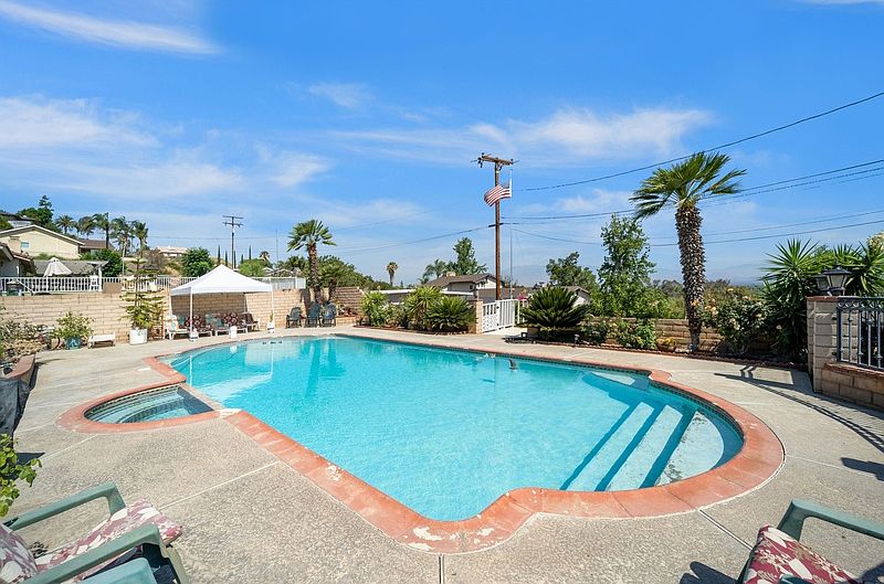 Welcome to 14240 El Mesa Dr. Located in the hills of Riverside California, this premier home strikes the perfect balance between warmth, brightness, and owning a compound! Sitting on an elevated lot, it features gorgeous views from your backyard, a large pool and more than enough entertaining space. 3 bedrooms, 2 baths with an open living and kitchen layout. Tons of natural light peaking in thru each side of the house and multiple points of access to the outdoor area. The home is newly updated and outfitted with tile and carpet throughout. This home is ready for move-in but also has insane potential for those looking to renovate the lot. With this size of lot, no vision is too small! This home has boat parking, an attached office, 2 car garage, huge pool, 5 different outdoor spaces, new roof, open layout and much much more! Do not miss the opportunity to own the perfect compound at this price!