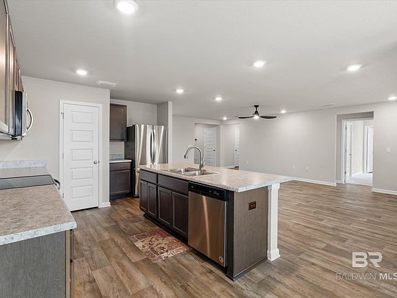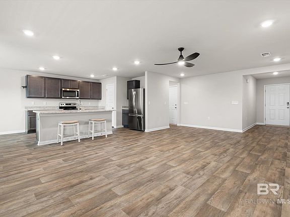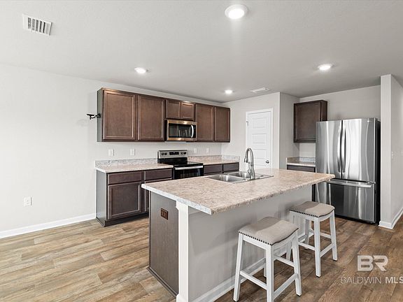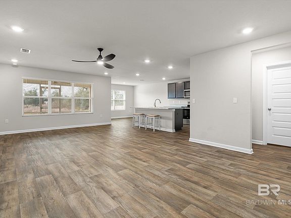 Welcome to Magnolia Shores, a beautiful community in Foley! This stunning 4-bedroom, 2-bathroom Booth plan offers an inviting open floor plan. This home features vinyl flooring throughout, with carpet in the bedrooms. The chef’s kitchen overlooks a spacious 24' x 15' living room and boasts a large island, perfect for entertaining. The primary suite is a true retreat, featuring a 5-foot shower, soaking tub, dual vanities, and an impressive 10-foot walk-in closet. Step outside to your 18-foot screened porch, where you can relax and take in the serene views of the neighboring farm, complete with pond views and farm animals. Conveniently located just minutes from top shopping and dining options, this home is also less than a mile from Magnolia Elementary. This home also features a whole-home generator, a 500-gallon propane tank, outdoor storage with power, and a spacious garage—all designed to enhance comfort and convenience. This home is built GOLD FORTIFIED. Don’t miss this opportunity to own a beautifully designed home in Magnolia Shores! Schedule your showing today. Seller is a licensed agent in the state of Alabama. Buyer to verify all information during due diligence.