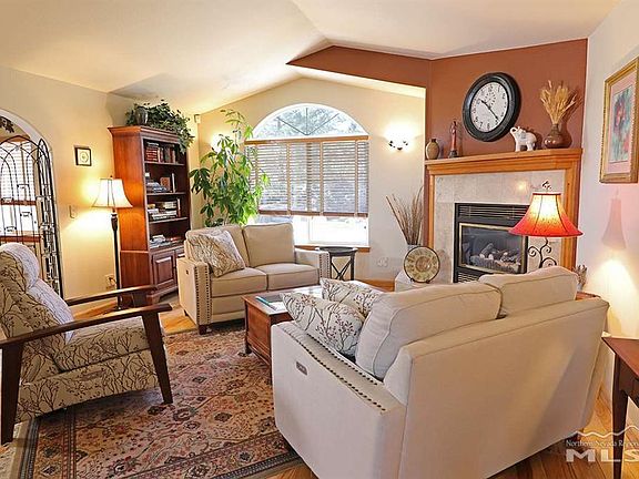 This beautifully upgraded Saddlehorn home to rent. From the welcoming entry to the separate living and dining rooms, to the downstairs master suite, even up the stairs there are elegant hickory floors throughout. And that's the just the beginning of the long list of features and upgrades that you'll find in this beautifully maintained home. There are million dollar Mt. Rose views from the living room, dining room master bedroom, and from the professionally designed park-setting backyard. Speaking of the backyard, you'll enjoy coffee in the morning, wine in the evening and the stars at night from 2 paver patios. A waterfall, stream and koi pond add to the ambiance. The kitchen and all of the bathrooms feature custom tile work. Everything is top of the line, including the cabinetry and black appliances. The huge laundry/mud room is a dream and the oversized 3-car garage has lots of storage space. Available 7/1/21. Rent $4100, $4100 deposit. The owner will pay HOA, Sewer and landscaping service.