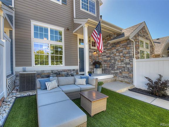 Warm and inviting townhome style living in the Broadlands neighborhood of Broomfield. The open concept floorplan allows the spaces to flow together for easy everyday living and effortless entertaining. The generous number of windows and tall ceiling allow sunlight to pour into this home. The kitchen is newly remodeled with quartz countertops, updated cabinetry, tile backsplash, stainless steel appliances. Enjoy the sunrise with coffee and tea on the private deck and sunset in style in the peace of a low maintenance yet beautiful front yard. Gleaming hardwood flooring throughout the living, dining, kitchen and family spaces, two-sided fireplace and an interior that is freshly painted awaits. Upper level offers expansive primary bedroom with a professionally remodeled bathroom, vaulted ceiling and spectacular mountain views. Two additional bedrooms, full bathroom and laundry room compliment the upper level. Full unfinished basement with bathroom plumbing rough in for future expansion. Alley access for easy entry into your attached two car garage. Community pool, clubhouse, local trails and parks compliment the neighborhood. Perfect location for commuting options no matter where your destination. Easy access to I 25, Nw Parkway, Hwy 36, Denver, Boulder, Dia. Plentiful shopping and dining are only minutes away. Current owners have meticulously maintained and carefully curated this home for more than ten years. Turn-key opportunity and pets are always welcome here.
