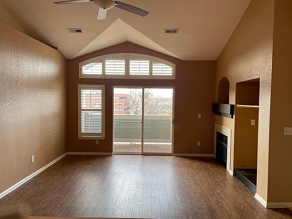 Experience the charm of Aurora City Shopping Center's vibrant neighborhood with this beautifully updated, move-in ready condo! Meticulously maintained, this home features high ceilings, spacious ceiling fans, a cozy fireplace, a welcoming patio, hardwood floors, new carpet, and plantation shutters throughout. The kitchen impresses with oversized cabinets, a raised eating bar, and modern appliances including a refrigerator and dishwasher. Enjoy mountain views and additional storage space off the balcony. The master bedroom provides a private bathroom and a large walk-in closet, while the second bedroom includes two closets and its own updated private bathroom. This condo also offers a washing machine, dryer, and water heater. You'll have two parking permits and access to the neighborhood swimming pool. With light rail, park-and-ride, and the Aurora City Shopping Center's numerous dining and entertainment options within walking distance, this home perfectly combines convenience and comfort. Garbage, water and sewer are included. Renter pays for electric and Gas.