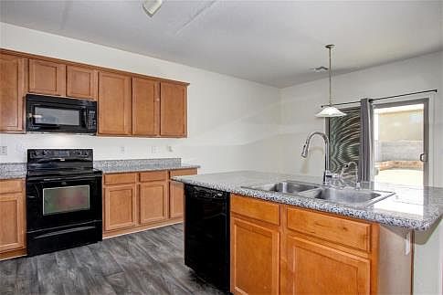 Beautiful move in ready home in the Sierra Verde community of Surprise! Masterfully upgraded with wood like flooring and designer paint throughout. Large eat in kitchen offers black appliances, custom cabinets, granite counters, pantry and a center island w/breakfast bar. One bedroom and 1.5 baths downstairs! Upstairs is the large loft, master bedroom and other spacious bedrooms all with plush carpeting. Master bedroom has a walk in closet and relaxing spa like bath with garden tub, separate shower and dual sink vanity. The generous backyard is ready for fun, fun, fun with a covered patio, fenced blue pool and tons of space for kids and dogs to play all day!! Don't miss your dream home! Put this home on your must see list and see it today!!