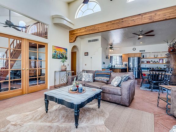 * VIEW VIDEO: https://az.movinghometour.com/22000910_Tucson%20MLS * This home currently set up as 2 br, but easily transformed into a 3rd br by adding closet doors. The views to Kitt Peak are stellar! Affords those great dark skies for stargazing for any hobby astronomer.This home was built with 8'' c.m.v. walls with 1 1/2'' foam exterior (Thermomass w R-12) making it super efficient and easy on the pocketbook. Step through the gates into this private oasis patio with pollination gardens and mature pomegranate trees, enclosed by masonry stucco walls. This home offers 9' walls, sloped, cathedral ceilings and clearstory windows, making it feel light, bright and airy in the living room and den/media/bedroom off the living room. Beautiful polished concrete floors; a unique space, and was well thought out when it was designed by the original owner.