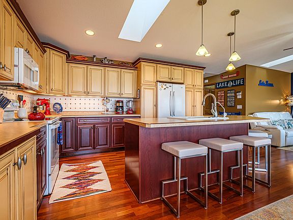 3 bedroom, 3 bath home on Lake Osakis with approximately 60' of shoreline. Home features an open floor plan, vaulted ceiling, and main floor laundry. Kitchen features a pantry cabinet, new microwave and stove, center kitchen island w/ stools, and primary suite with a private 3/4 bath on main floor. Bathrooms feature in floor heat. Spacious bonus room above garage and 3rd bedroom and a 3/4 bath. 3 season porch and a nicely landscaped yard. America's Preferred Home Warranty included.