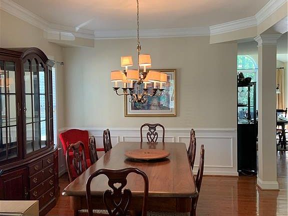 Incredible Transitional Home in Sought-After Community Tanner Village Charter Colony. Featuring 5 BR, 4.5 BA, 3,186 sq ft, private backyard and beautiful hardwood floors. Be welcomed inside and notice the easy flow from the open floor plan. Formal living room offers decorative crown molding opening to formal dining with detailed column accents, tray ceiling and wainscoting. Kitchen is a stunner boasting wine fridge, island, granite counters, tile backsplash and spacious pantry. Family room centers around cozy gas fireplace with detailed mantle. Morning room is the perfect breakfast nook flaunting dramatic vaulted ceiling and Palladian window. Access to outdoor space reveals a stellar backyard with huge deck and ultimate privacy with rear fencing. Retreat upstairs to primary suite complete with dual closets, sitting room & en suite w/separate vanities, jetted tub, walk-in shower and water closet. Additional 3 BR's offer jack n' Jill bath and private bath. Third floor walk-up offers 5th bedroom with walk-in closet and its very own private bath. Walk-in attic provides tons of storage.
