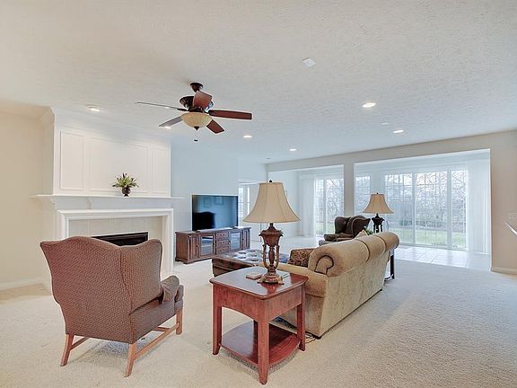 Hard to find LARGE ranch w/ full basement! No compromises - bring it all! Floor plan feels so big - sun room with a wall of 8a windows/doors lets tons of light into the spacious great room! 3 bdrms PLUS office w/ French doors & built-ins. Maple hardwoods in entry & kitchen. Huge great rm w/ gas fireplace is open to the kitchen w/ double ovens, granite, eat-in bay w/ plantation shutters. Recessed lighting throughout! Master suite w/ large walk-in closet, tile bath w/ separate tub & shower, dual raised vanities. Washer/dryer stay in the laundry rm w/ utility sink & plenty of cabinets. Enormous basement w/ 9a ceiling, plumbed for bath. Oversized patio w/ no homes directly behind. HVAC & water heater just over 1yr. Super clean & neutral!