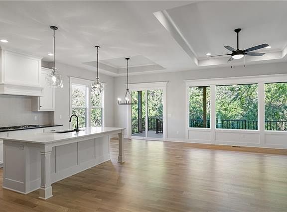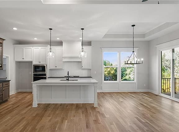 NEW PRICE! QUICK MOVE IN on this popular Fairfield Reverse 1.5 by Inspired Homes. Enjoy PRIVACY with a WALK-OUT TREED homesite! Plus ZERO ENTRY from the front door & garage. ELEGANT & FULL OF UPGRADES including 8’ entry door, wainscoting, shiplap, wide trim, SITE FINISHED HARDWOOD FLOORS and designer tile. Inspired Homes brought the LOFTY feeling indoors w/ 10’ CEILINGS on the main level and 9’ on the lower. CUSTOM oversized windows give a beautiful view of the trees and the OVERSIZED COVERED DECK is like having your own tree house! Ultimate MAIN LEVEL LIVING CONVENIENCE w/ laundry off Primary suite and 2nd bedroom/office. CHEFS kitchen w/ designer curated finishes, WALK-IN PANTRY, GE PROFILE Built-in Appliance & HUGE island! Lower level is just as WOW as the main! Spacious rec room w/ VINYL Floors walks out to the oversize patio overlooking the trees. Two more bedrooms, full bath and storage mean there’s room for it all! OUTDOOR ENTHUSIASTS love it at Lakeshore Meadows! A quiet community that’s just west of the newly renovated Lake Olathe Recreation Park with marina, beach, extensive walking/bike trail system & lake access for kayaking, paddleboard, swimming & fishing. Lakeshore Meadows is within 10 minutes of grocery, restaurants and KC Winery. Just a short drive to K7 & Old 56 Hwy/I-35 make this an exceptional location in beautiful western Olathe! ***PHOTOS OF THE ACTUAL HOME