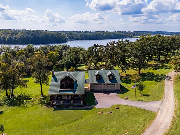 Experience effortless living in this 4-bedroom, 4-bath Craftsman Mission-style home on nearly 2 acres within the gated community of Caddo Creek Estates. Every furnishing, appliance, and décor element conveys—right down to the linens, accessories, and outdoor mosquito misting system. The detached four-car, double-tandem garage (with new epoxy flooring) provides abundant space for vehicles, watercraft, or workshop pursuits. Inside, enjoy lake and pond views from nearly every window and porch. The main-level suite opens to a private deck, while the upstairs primary suite includes a balcony overlooking the water.