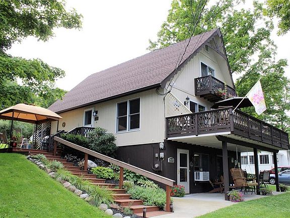 Keuka Lake- Year-round, 3 bedroom, 2 1/2 bath, 2400 sq. ft. chalet with a full/finished/walk-out basement. 50' of natural frontage at the very tip-of-Bluff. 2nd kitchen & bar, natural gas, 3/4's of a acre of privacy, blacktopped drive with tons of parking, brand new kitchen with quartz counter tops, cherry cabinets, deck and patio, and so much more! This is very special...
