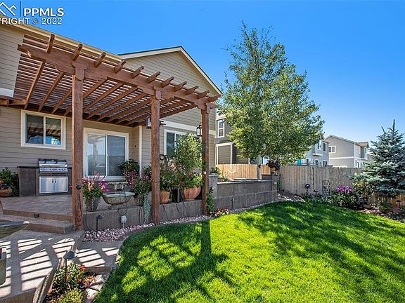 Pride of ownership at its best.This home is STUNNING!Looking for a project free,spotless home,with no HOA and Pikes Peak views?THIS IS IT!!Owner has thought of EVERYTHING.Enter through your custom front door onto a full level of easy care, beautiful, wood look, tile floors.Vaulted ceilings give an open and airy feel.Your Kitchen host custom cabinets, High-end GE Cafe SS Appliances with double oven, 6 burner gas range, Microwave and refrigerator.Granite countertops, under cabinet lighting, drawer organizers, and built -in wine rack are only a few of the kitchen highlights.All new in 2020.Walk out to your own backyard Oasis.Pikes Peak and Air Force Academy views.The open space behind, really elevates the privacy of this amazing gathering spot.Natural gas firepit and grill mean no hauling propane.New fence in 2019.Stamped concrete patio with Pergola added in 2021.Back yard shed keeps your items tucked away until needed.Your main level family room, host a warm and inviting heatilator,fireplace.Stay organized with CA Closet shelving/drawers throughout the home. Head upstairs to 3 bedrooms and 2 baths.All with the same wood look, easy care, tile floor, as your main level.You must get a look at the master closet.Custom and wonderful.A real closet dream. Master bath has a zero entry, linear drain shower, and built-in vanity area.Your finished basement is outstanding.Large,full bath with tons of storage, family room and inviting bedroom.Careful, guest may never leave.Bedroom #5 has been upgraded to an office space with CA Closet add-ons,LVP flooring and quiet location.Remove add-ons to Easily use as a bedroom.The Garage.WOW.Resilient Epoxy floor, cabinets on each wall, tool tracks, and opener.You have to see this. Surround sound speakers,Humidifier,Outdoor speakers,ceiling fans,A /C,beautifully landscaped yards,mature trees,window well covers,Anderson windows-2020,Class 4 Roof-2017,Rheem water heater-2019, New Garage door-2019, Nothing to fix!! MUST SEE- Too Much to list!!!