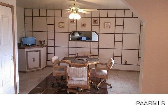 Beautiful large home with huge country kitchen. Double sided see thru gas fireplace in massive living room and formal dining area.Large workshop behind garage. Well cared for by original owner/builder. Low maintenance vinyl siding on outside. Den could be possible 4th bedroom. Room to build an additional 2 or 3 car garage. Home surrounds an open atrium, very unique. Views of Bradshaws and Mingus Mountains.Rollouts draws in Kitchen cabinets. Self closing too. Mrs. clean definitely lives here.