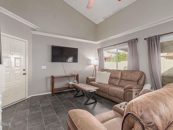 Discover the joy of owning this charming two-story residence in Glendale! Inside, you are greeted by the inviting living & dining room boasting a cozy fireplace, tile flooring, vaulted ceilings, and sliding glass doors that provide a seamless indoor-outdoor transition. The kitchen comes with track lighting, stainless steel appliances, and plenty of cabinets & cupboards. Continue upstairs to find the large primary bedroom, offering plush carpet, a walk-in closet, and a functional barn door leading to the bathroom with a floor-to-ceiling tiled shower. Spacious backyard has a storage shed and a covered patio where you can spend quiet moments. Great location, just a few minutes away from restaurants and schools. A gem like this won't last long! Hurry!