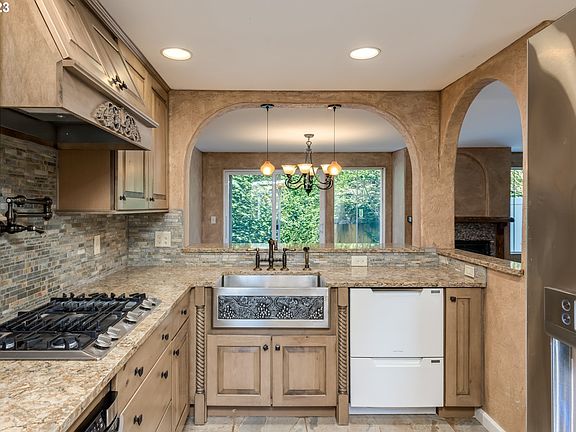 Charming traditional townhome in a prime location! Beautiful Chef's Kitchen with quartz countertops, gas range, built-in double oven, pot filler, wet bar, bar top seating and tile floor. Hand Blown Lighting Sconces from Italy. Cozy family room with a gas fireplace and abundant natural light. Vaulted primary suite with walk-in closet and private bath. Near Progress Ridge with New Seasons, AMC Movie Theater and great shops and dining. Easy access to Beaverton walking trails.