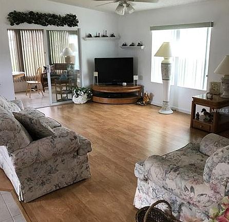 Beautiful Home on the Golf Course! Move in ready you won't have to do anything. You have to see this home with all the upgrades in 2016 and 2017. New laminate floors in the living room, dining room and bedrooms. New tile in the Florida room. New covered porch and walkway, new 20 x 10 patio. New custom window treatments 2016, new picture window, pendant lights over the bar area and the interior of house was painted in 2016. The house has a lifetime membrane roof. Sentricon Termite system in 2016. 3 bedroom 2 bath with a Florida room, 2 car garage and 1674 SqFt heated. Close to shopping, US 19 and the Interstate. House is a must see to appreciate.