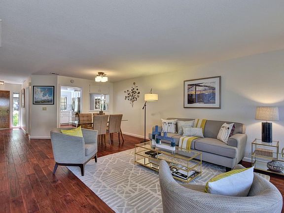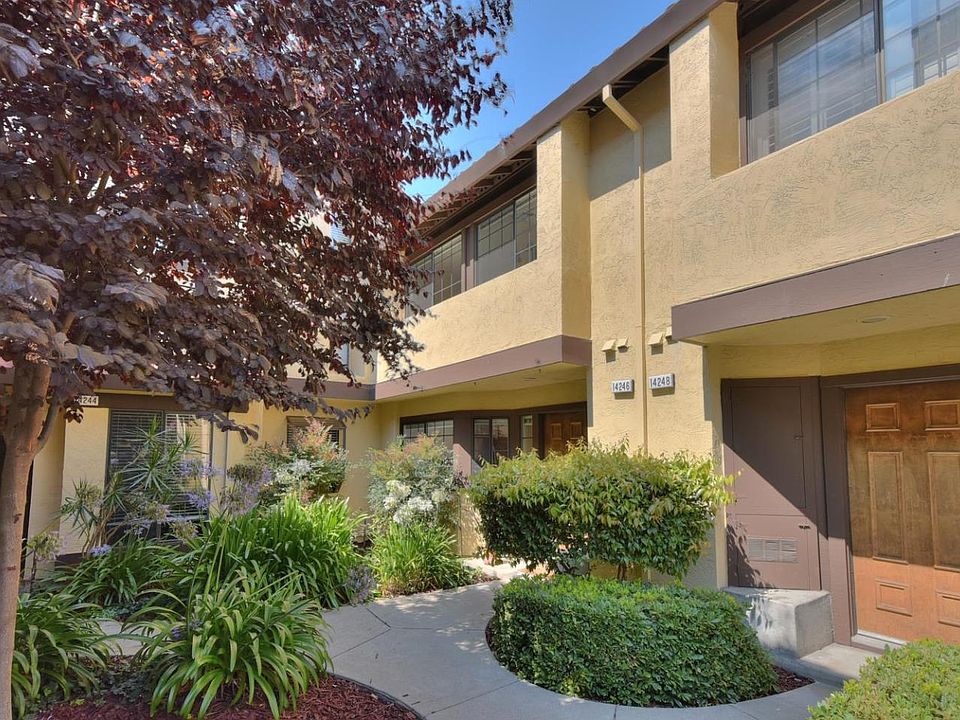 AN ABSOLUTE MUST SEE! SHOWS LIKE A MODEL HOME! True pride of ownership is shown with high quality design and hardwood floors throughout this home. The bright kitchen has beautiful marble counters & backsplash, ample cabinets, gas range, and stainless steel appliances. Enjoy your morning breakfast in the cute eat-in area off the kitchen. Entertain your guests in the large living and dining area w/ a gas fireplace and outdoor patio access. Relax in the spacious master bedroom that has vaulted ceilings and a deck w/ extra storage overlooking the community landscaping. The master bath has an updated vanity, dual sinks, tiled shower and floors. There is also in-unit laundry, updated hall and half baths, and 2 enclosed garages for your parking and storage needs. The gated community has generous amenities with a pool, spa, tennis, basketball, and bocce ball courts. Conveniently located near San Leandro Marina, Marina Park, golf courses, restaurants, shops, and Kaiser.