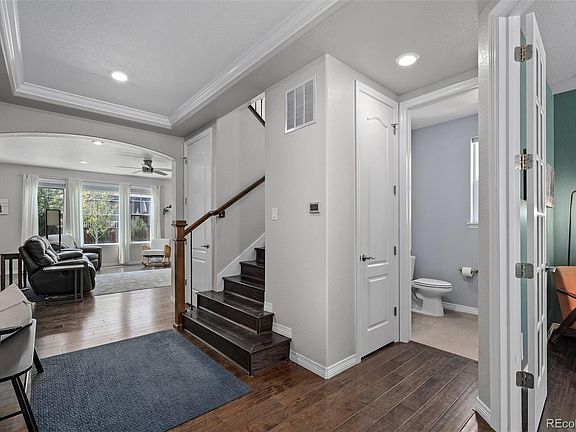 Over 4100 finished square feet. Fully finished basement and a private yard. Come take a look at this great home in the desirable Lewis Pointe neighborhood! You will feel right at home when you walk in the door. The main floor offers a great open floorplan with a kitchen that includes a huge island, a dining room and a living room all flowing seamlessly together. The kitchen is upgraded with 42 in cabinets, double ovens, granite countertops, tile backsplash, stainless steel appliances and a large pantry. Hardwood floors run throughout including a main floor office with an adjacent powder room and a second spacious pocket office as well. The owners suite comes with coffered ceiling, a 5 piece bath and a large walk in closet that connects to both the primary bathroom and the upper floor laundry room for convenience. There are three more bedrooms on the upper floor. Two of the bedrooms share a jack and jill full bathroom and the other bedroom has its own full bathroom. A large finished basement that includes a fifth bedroom, a bathroom, and a gym! Out back is a beautiful covered deck that provides plenty of space for entertaining and also includes a built in outdoor fireplace. The recent addition of 8 skyrocketing junipers makes this one of the most private yards in the neighborhood. This home also includes a 3 car garage and a high end whole house water filtration system. Just two blocks to the neighborhood park and walking path with unobstructed mountain views.