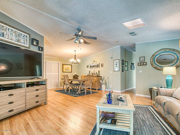 Updated 2/2+den/office built in 1992 wtih cathedral ceilings throughout! SPACIOUS & WELL UPGRADED ISLAND KITCHEN, WOOD LAMINATE & CERAMIC TITLE THROUGHOUT, very open floor plan with extra storage everywhere including huge utility and golf cart room. Kitchen & bathrooms updated with new countertops, enclosed Florida room to enjoy the weather, double driveway for extra parking, move in ready! Located in a 55+ gated golf community where you OWN YOUR LAND!