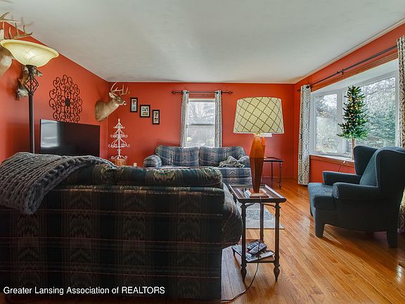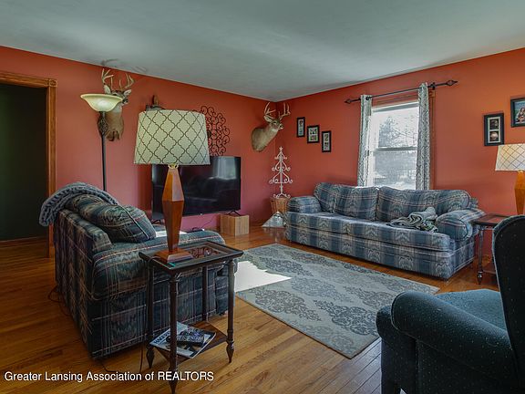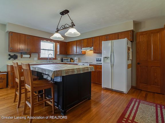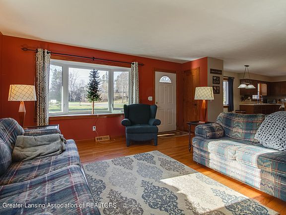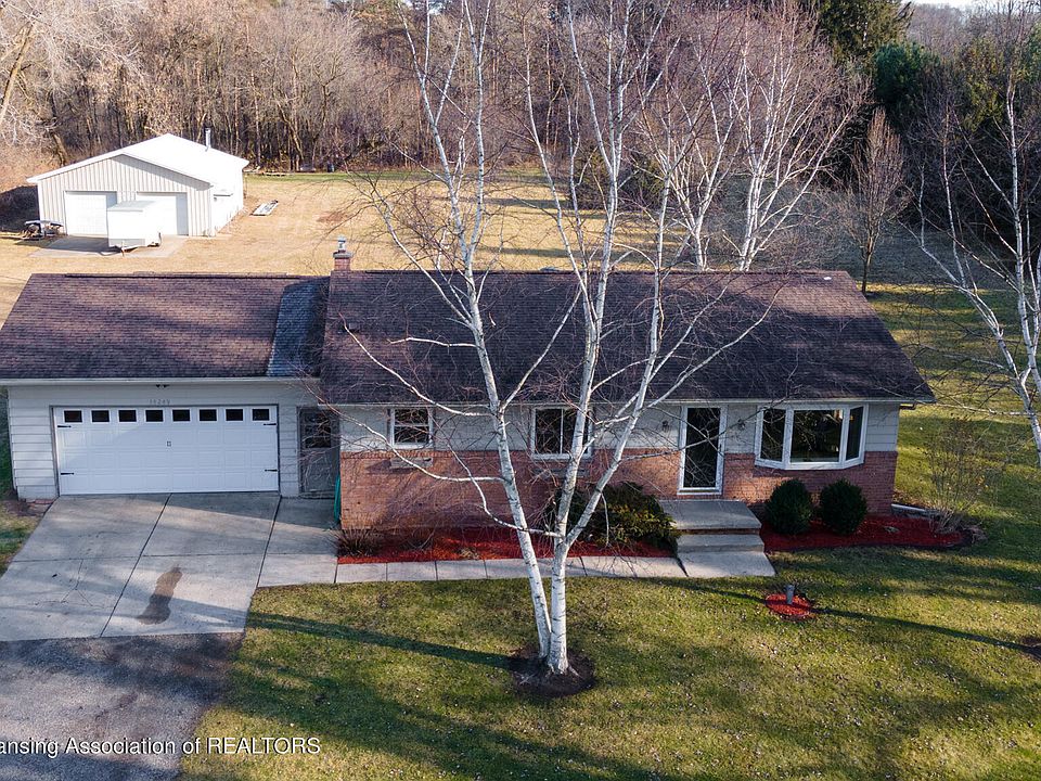 Over 3 Acres of serenity with woods and a creek running through the back property. POLE BARN includes electric, heat and cable! This delightful 3 bedroom ranch home has an inviting warmth that you will want to call yours. Hardwood flooring throughout, spacious kitchen with island, large windows in the eat-in kitchen and living room perfect for watching the sunset. 2 car attached garage and large fenced in garden.