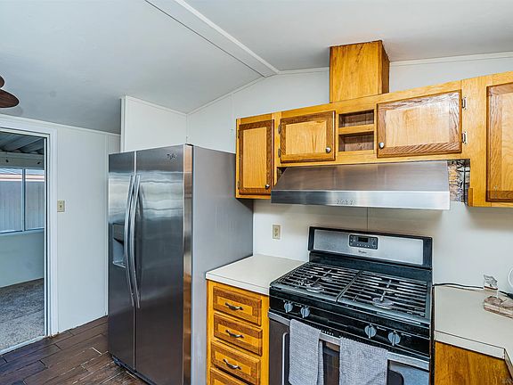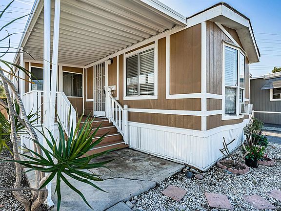 Welcome to this charming mobile home located in the 55+ senior community of the Palace Garden Mobile Home Park. It boasts of 2 bedrooms and 1 bath, plus a large carpeted enclosed patio! And an attached carport with enough parking for 2 vehicles. The home is well maintained. The park is pet friendly, but restrictions apply. There is a community pool and clubhouse, plus home is close to freeways and stores.