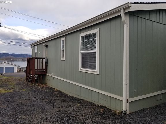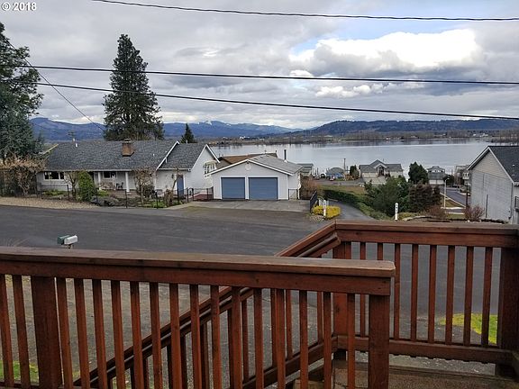 River view, easy care and large shop in town. What a combination! This home feature 3 full bedrooms, with the living, dining and kitchen all featuring great views of the Columbia River. Located in established, quiet neighborhood, this home has a unique high clearance, large door shop and pull thru alley parking on the side. The front deck affords space to relax and enjoy the unobstructed views.