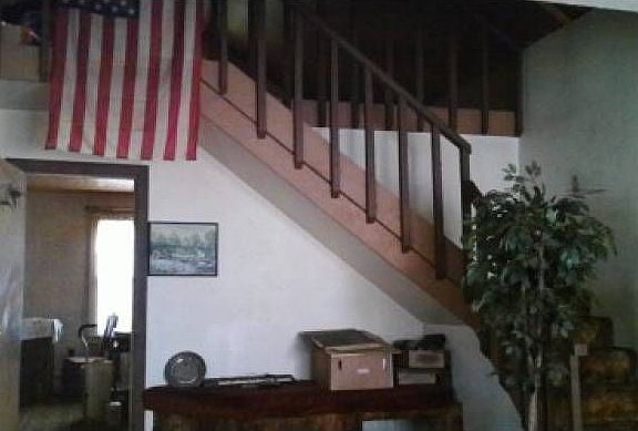 Visibility for in-house business. Sweet 2 bedroom house with updated vinyl siding and roof, furnace and bath. Nicely landscaped with front sitting open porch and backyard deck. Loft is an easy bedroom. Step-up in living room area creates two areas of living space. 2 car detached garage was former retail bike repair shop.