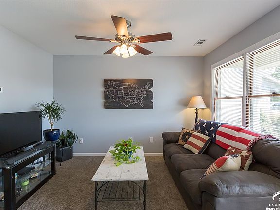 Move in ready! Well maintained with updates, 2 bedroom, 1.5 bath townhouse. New interior and exterior paint! Large kitchen with recessed lighting under cabinets. Backyard enclosed with privacy fence. New carpet in 2017, with designer carpet on stairs. One year home warranty included! Located on a cul de sac. Close to restaurants, schools, and a grocery store. Easy access to K10 and less than 10 minutes from Lawrence.