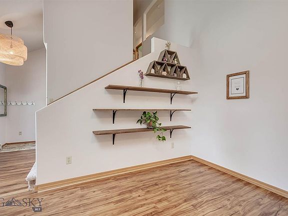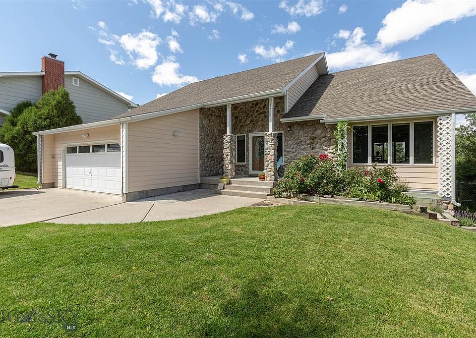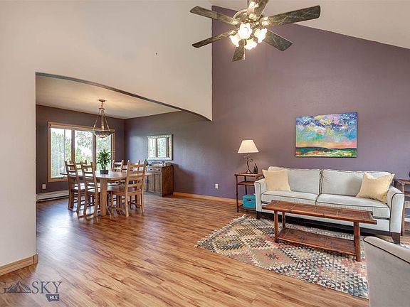 This spacious and comfortable home is in an exceptional location close to the hospital, downtown and miles of trails right out the back door. With room to spread out inside and out, there is so much to love. A vaulted living/dining room area can serve as library, or for music or entertaining. The kitchen is the heart of the home, with connectivity to the dining room, cozy sunken family room with gas river rock fireplace and raised deck overlooking the Bridger Mountains and spacious 9,000 SF fenced yard. New luxury vinyl plank flooring offers cohesiveness to the spaces and new lighting and solid surface kitchen counters provide welcome updates. The walk out basement completes the package with many flex spaces and your very own Sauna. Efficient hot water baseboard heat is a bonus, creating clean, consistent warmth on those cold winter days. Enjoy a bike ride to town, miles of trails groomed for cross country skiing and unobstructed mountain views and sunsets!