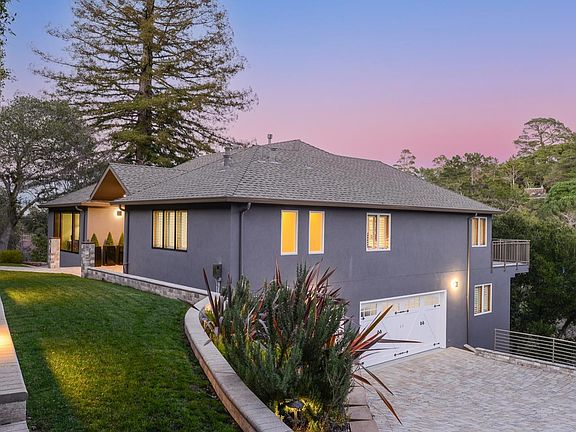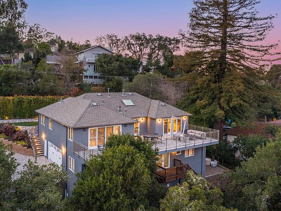 Meticulously renovated Hillsborough 4BD/4.5BA showplace with outstanding outdoor space and Bay views. The like-new two-level home features wide-plank hardwood floors, designer lighting and wallcoverings, and bright windows throughout. Relax in the large living room or entertain in the dining area surrounded by a skylight and two-sided fireplace. Chef's kitchen features upscale Wolf and Sub-Zero stainless steel appliances, waterfall island and wine refrigerator. Outside, the expansive terrace welcomes al fresco entertaining surrounded by breathtaking views. Enjoy a massive main-floor owner's suite offering terrace access and an en suite spa bath with separate vanity/water closets and a custom dressing area. On the lower level, you'll find two matching secondary bedroom suites plus a huge rec room ideal as a family room, media room or a lavish lower level Master bedroom suite. Pristine attached 2-car garage with laundry and home gym (or 3rd car parking). Serene and very private location.