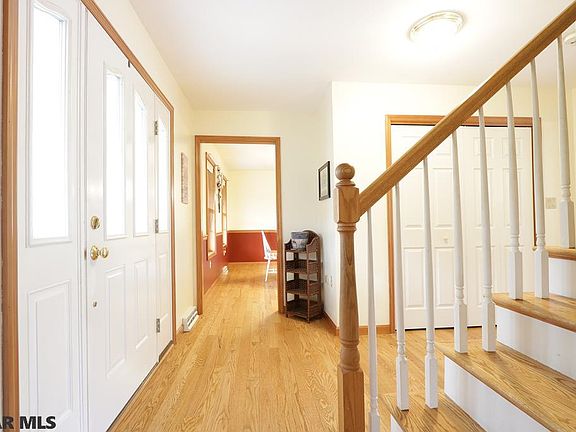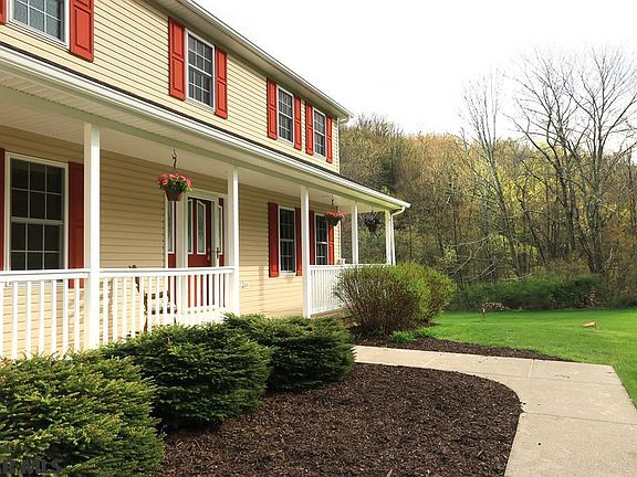 Beautiful, peaceful country setting on nearly 2 acres. This nicely maintained newer home boasts hardwood flooring throughout most of the first floor. The front living room is currently used as a playroom and could be a music room, office, or reading room. A large kitchen with plentiful cabinetry and countertops features a breakfast bar, tile backsplash, a desk area and a double oven. The adjacent family room has a wood burning fireplace, while the downstairs walk-out rec room features new carpet and a wood stove. Upstairs find four ample sized bedrooms including a large master suite with walk-in closet and full bath with double sink vanity. The walk-out basement comes complete with a full bath, rec room, an office, and has a slider to the patio. Relax on the front porch or rear deck and take in beautiful views and wildlife. Plenty of storage abounds in the oversized 2 car garage. Fifteen minutes to shopping at the North end of State College and 20 minutes to Penn State.