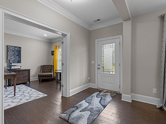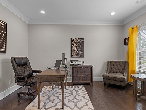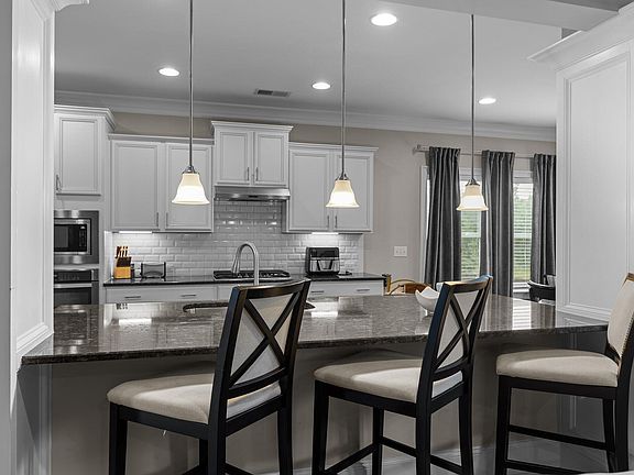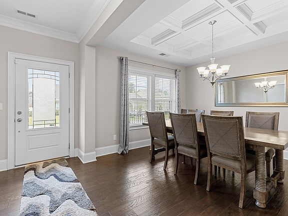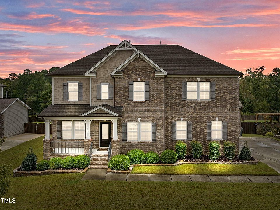 Located in popular Drayton Reserve in Wake Forest, this spacious 5-bedroom, 4.5-bath home offers 3,385 sq. ft. of living space on a .36-acre homesite with serene wooded views. The bright, open-concept kitchen is the heart of the home, offering white painted cabinets with crown trim, a subway tile backsplash, stainless steel appliances with a gas cooktop, and a large island overlooking the family room. The first-floor owner's suite features a tray ceiling, crown molding, recessed lighting, and wood floors. The luxurious en-suite bath offers granite countertops, tile flooring, a tile-surround shower, and a soaking tub—your own private spa. Enjoy cozy evenings by the corner gas-log fireplace, or step into the screened porch just off the breakfast nook to take in views of the fenced backyard. Step into the foyer, where a coffered-ceiling dining room sits to one side, while a study with glass French doors, crown molding, and recessed lighting is on the other. Upstairs, a versatile loft space is perfect for movie nights, while four additional spacious bedrooms and two full bathrooms complete the second floor. A thoughtfully designed home in a fantastic location—don't miss your chance to make it yours!