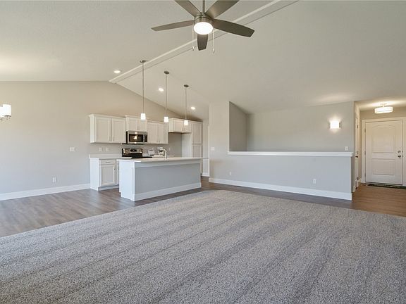 This new construction ranch home offers modern living with a walkout lower level, featuring a finished rec room with a slider to the patio; over 2000 finished square feet and space for additional bedroom and stubbed for a future bathroom, for you to do some sweat equity or have the builder finish, let us know if you want pricing to have your home completed prior to moving in. The kitchen and dining area showcase stylish LVT flooring, Quartz counters, stainless steel appliances, white kitchen cabinets, breakfast bar/island. A slider off the dining area leads to a deck with stairs down to the patio, creating seamless indoor-outdoor connectivity. The primary suite is a retreat with trey ceilings, a spacious walk-in closet, and a luxurious bathroom featuring a Quartz dual vanity top. Convenience is key, with a strategically located laundry room near the bedrooms.