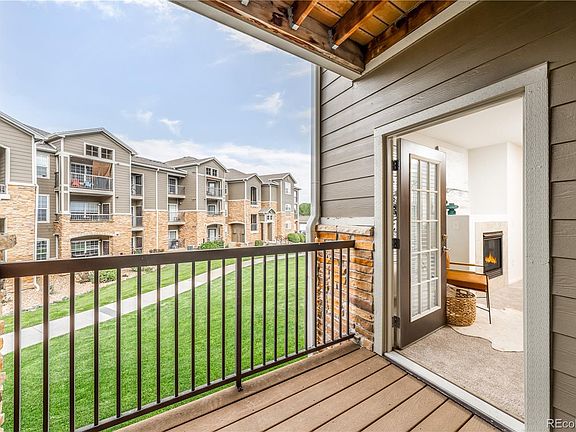 Vista Ridge Condo Now Available! Low-maintenance living meets modern comfort & convenience in this central location. This bright, move-in-ready unit features vaulted ceilings, two private balconies, and a cozy fireplace, creating a stylish and comfortable retreat. The primary suite offers a walk-in closet, ensuite bathroom, and private balcony with Southern exposure, perfect for morning coffee. The updated kitchen features new appliances, luxurious vinyl plank flooring, granite countertops & contemporary light fixtures. The secondary bedroom, complete with balcony access and a full bathroom, offers versatility as a home office or guest room. Additional conveniences include a dedicated mudroom/laundry area, and an exterior utility closet for extra storage. This condo features a one-car garage (G-21-C) with convenient guest parking directly in front. Enjoy community amenities including a clubhouse, pool, hot tub with mountain views, 24-hour fitness center, sand volleyball court, and playgrounds. Explore over 300 miles of scenic trails with panoramic Rocky Mountain views. Located near dining and shopping, and zoned for top-rated Erie Schools, this central location offers easy access to I-25, E470, and Baseline Road. Just 30 minutes to Denver, Boulder, and DIA, and 10 minutes to Orchard Town Center, Top Golf, Costco, and Denver Premium Outlets. Well maintained, you will have peace of mind with newer A/C (2022) & Water Heater (2019). Building 15 is located on the southeast side of Blue Sky Condominiums, offering a well-maintained and peaceful living environment. “Centrally Located off the Colorado National Golf Club”