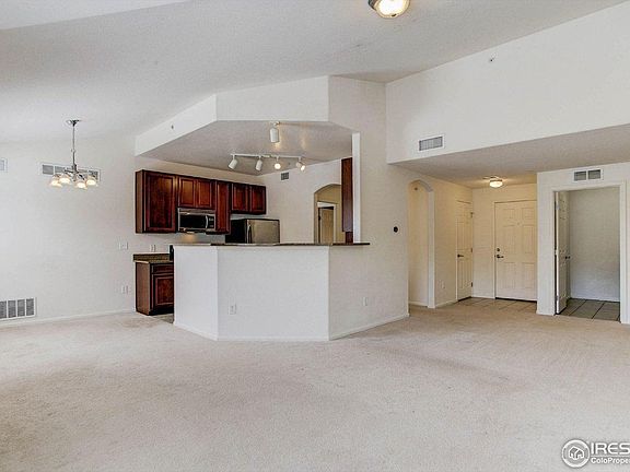 Large and open 1,271 sqft condo, end unit, top floor with vaulted ceilings so no loud neighbors! Extra long garage big enough for a vehicle and plenty of storage! Separate, private wings for the bedrooms make it great for roommates or to have separation from guests/kids. Master bedroom has attached full bath and private deck. Additional deck is accessible from 2nd bedroom and living room. Open concept floor plan. Very airy feeling with the vaulted ceilings. Comes with nearly new Maytag appliances. Includes extra long 1 car garage right in front of unit. Beautiful community center with gym, common areas, pool and year-round hot tub with views of the mountains! Every 4th Wednesday of every month there's food truck night with community food trucks and games. This is a great community to live/work/play with easy access to downtown Lafayette, Denver, Boulder, Fort Collins and I-25. Ready for move in now. 12 month initial lease with options to renew. Owner pays for trash, water/sewer, HOA fees. One well behaved, potty-trained pet negotiable with extra pet rent. Absolutely no smokers. 12 month lease with option to renew.