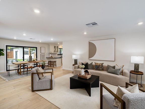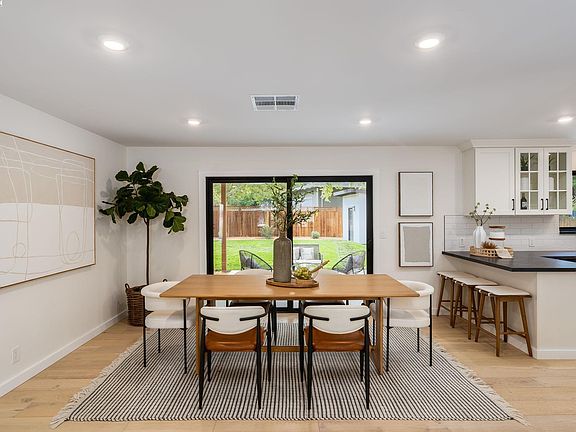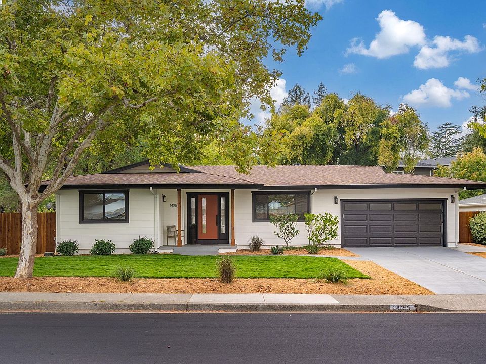 Welcome to a reimagined Walnut Creek residence where timeless character meets modern California living. Thoughtfully redesigned, this single-level home sits on a generous flat corner lot in one of the area’s most desirable neighborhoods. Light-filled living spaces feature wide-plank oak flooring, recessed lighting, and a cohesive modern aesthetic. The chef’s kitchen impresses with sleek white cabinetry, rich soapstone countertops, and high-end appliances. The primary suite offers a custom walk-in closet and a beautifully finished bath, while additional bedrooms provide versatility for family or guests. A detached office in the backyard mirrors the home’s design, offering the perfect space for remote work or creative pursuits. Outdoors, brand-new redwood fencing, fresh sod, and a custom pergola create an inviting setting for entertaining or relaxation. Conveniently located near Palos Verdes Shopping Center, top-rated schools, parks, trails, and freeway access.