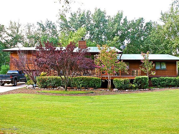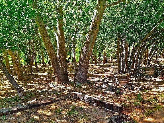 Let the sound of Oak Creek lull you to sleep in this park-like setting. Truly Unique property, nestled on 1.9 acres with 170 feet of Oak Creek frontage. Deeded irrigation rights. Contemporary, well built home with redwood siding and river rock veneer (from property), low maintenance metal roof. Beautiful appointments include wood flooring, tongue and grove ceilings, Pella windows, copper wood burning stove. Kitchen features oversized Stainless steel fridge/freezer combo, granite counters, warming drawer and wine cooler. Heated/ cooled by eco- friendly water system. Fully fenced yard with gated entrance. Enjoy breakfast on one of your three decks or just unwind after a long day. Owners have spent $40,000 recently refinishing the wood floors throughout, interior paint, etc. Short term rental