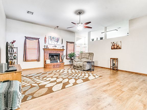 Move in ready!!!! Great home for retirement or family. Small yard and easy to care for. Walk to Blanchard Elementary or High School! This home is on a cul de sac! Updated home has granite countertops in the bathrooms, new flooring in great room and dining room, and beautifully tiled master shower. Lots of closet space! Huge living area with gas log fireplace. Master Suite has 2 walk-in closets and an oversized tiled shower. Gas stove.