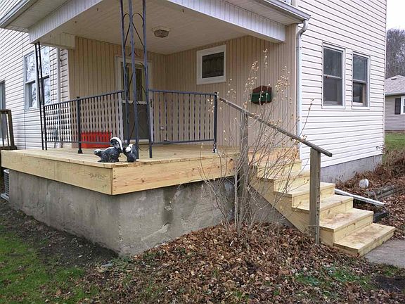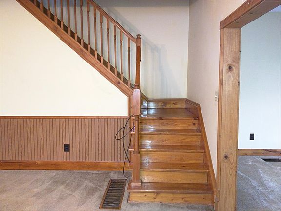 Your Personal Invitation...Please Come In! You will find custom woodwork and trim throughout. The staircase is newer and impressive. The living room features a stained glass window. The dining room is huge and could be family living space. The kitchen has lots of cabinets and room for a table and chairs. The laundry room cabinets were custom made. The full bath downstairs has been updated. Upstairs you will find a full bath and 3 very good sized bedrooms. The master bedroom features a tray ceiling and double closets. The furnace, central air and water heater are within 8-10 years old. The front porch is brand new. The windows are double pane. There is an unfinished room in the back of the house that is waiting for your ideas and decor. Outside you will find a 2 tier deck, a storage shed and don't miss the over sized garage/workshop. The insulated garage has a furnace (flew pipe is currently not connected), separate utilities (gas and electric) and a new roof. Move in ready!