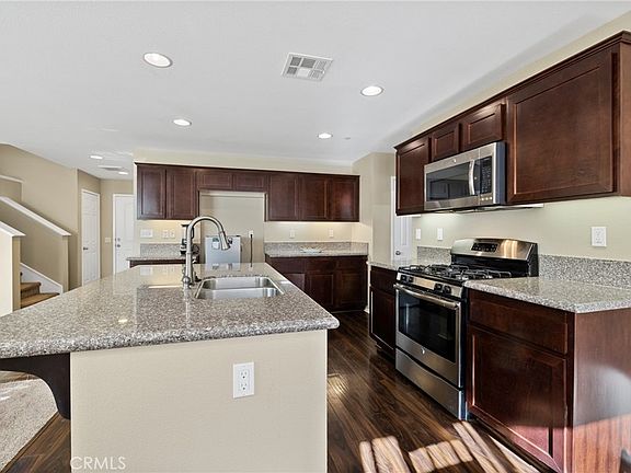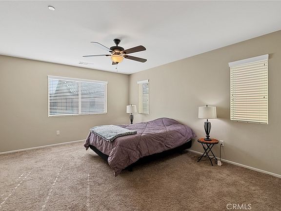 Nestled within the highly sought-after gated community of Estrella in Beaumont, discover this immaculate 4-bedroom (one downstairs), 3-bathroom home offering efficient living and a maintenance-free lifestyle. Upon entering, the interior is bathed in natural light through strategically placed windows, accentuating the neutral paint colors and decor that eagerly awaits your personal touch. The open floor plan seamlessly connects the main living areas, fostering togetherness while accommodating diverse activities. The well-equipped kitchen boasts a center island, high quality appliances, and a charming breakfast nook with the view of the rose garden in the backyard, inviting you to savor culinary pleasures. Whether for casual gatherings at the breakfast bar or formal dining in the adjacent area, this home caters to varied dining experiences. Convenience meets functionality with a downstairs bedroom and bathroom, providing flexibility and ease. Don’t miss the Harry Potter closet under the stairs in the entryway. Ascend upstairs to find the large laundry facilities conveniently situated among three of the four bedrooms with so much storage, shelves, and huge area to fold and hang clothes. The primary suite beckons relaxation, offering a spacious walk-in closet and a generous main bathroom featuring dual sinks, a shower, and a bathtub, culminating in a harmonious blend of functionality and comfort. Experience a lifestyle of leisure with community amenities such as a playground area and an inviting pool, gas BBQ’s, outdoor showers, perfect for recreation and relaxation.