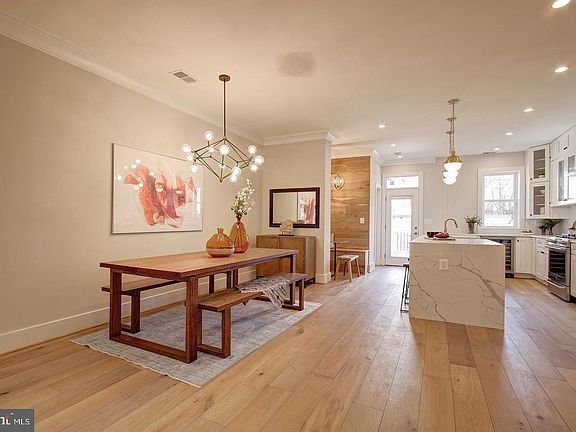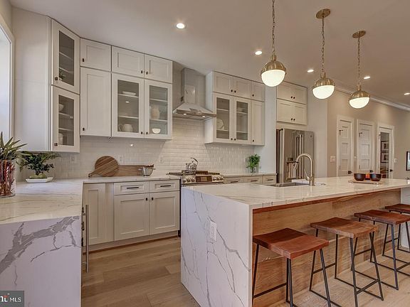 AMAZING VALUE! Gorgeous fully renovated home with five bedrooms, three-and-a-half bathrooms designed for entertaining with 7~ wide wood floors and recessed lighting throughout. Gourmet kitchen with 10' Island, premium Calacatta Laza quartz countertops, stainless steel appliances, breakfast nook, and a wine cooler. Marble baths with designer touches. Gracious master bedroom with vaulted ceilings, dual closets, and trendy loft just above. Spacious living room, dining room, family rooms, private deck, landscaped yard & two secured parking spaces. Lower Level has rental potential with two bedrooms and one bathroom, wet bar, wine cooler, separate laundry, and front & rear entrances.