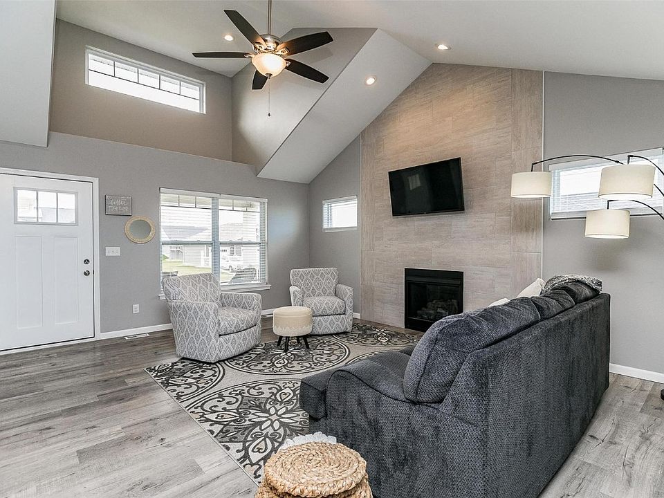 WOW!! Great 5 bedroom 3 bath home located in the highly sought after Heartland Heights neighborhood right in the heart of Fairfax, IA and in College Community Schools! Nothing like a small towns feel yet so close to the major highways for commuting and all the essential shopping! If location wasnt enough then you will truly appreciate the custom feel this home brings with all the upgrades! Large vaulted ceilings, bright dormers set the stage and wow you immediately as you walk in. You will also find the custom tiled fireplace surround and additional windows flanking it make another statement, and luxury vinyl flooring throughout the entire house! As you walk into the kitchen you will notice the upgraded white quartz countertops, stainless steel appliances, and beautiful espresso cabinetry! Large vaulted dining that leads you to extended entertaining space, the covered deck!! Such a bonus and can be enjoyed rain or shine! Great sized bedrooms with a large master with tray ceilings, custom en-suite with tiled shower and dual vanity! Bright and airy walkout in the lower level make the home extra functional as you have a second large family room, two additional bathrooms, ample storage, (potential workout room) and full bath! Additional notable features; fully fenced yard, large covered front porch, extra garage space, larger laundry room, locker drop-zone and much more!