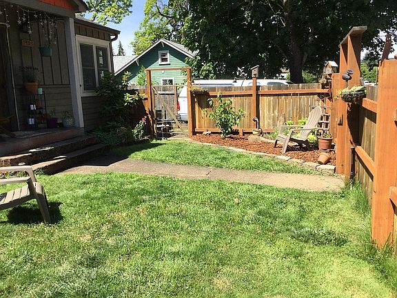 Affordable 2 bedroom 1940 Cottage. Updated Kitchen, stainless steel appliances, black walnut island and cabinets. Nicely landscaped yard, with garden, grapes, and covered area with shed. Small but great level space. Hardwood floors. Wood stove heat in living room makes this place so cozy! Fenced front and back yard, flower beds, and room for a great garden.