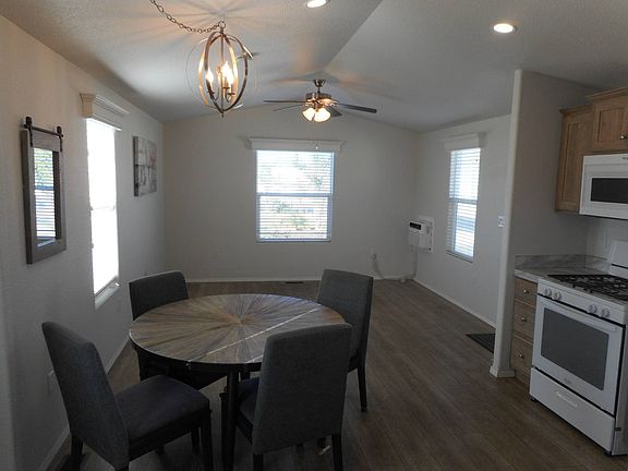 This 2019 Manufactured home shows "pride of ownership"! Located in east El Cajon within walking distance to Kaelin's Market and public transportation. Home was custom designed for the seller's mother with a wheelchair ramp and a sitting deck on the side. Beautiful kitchen cabinets and fully equipped with refrigerator, dishwasher, microwave, stove and disposal. Home has 2 wall AC units, window box valances and blinds throughout. Dual pane windows and washer/dryer hook-up. (LBO1980)