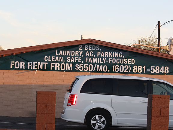 2 Bed / 1 Bath, newly remodeled units with A/C. Each tenant has assigned parking and access to on site laundry facilities. We have put in a new playground / picnic area for the families living here. Pets are welcome and the Landlord pays for water, sewer and garbage. This building is only 8 blocks from downtown! Units are renting for $550/month. Please call (602) 881-5848 to inquire.