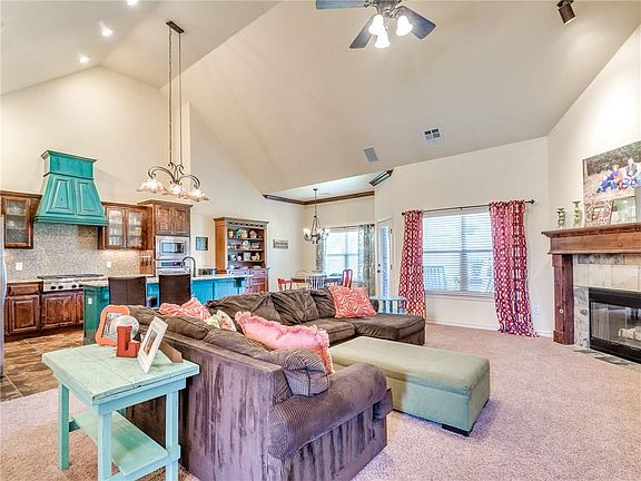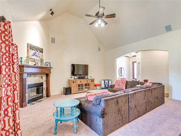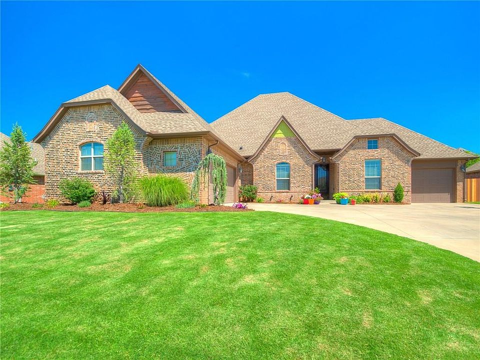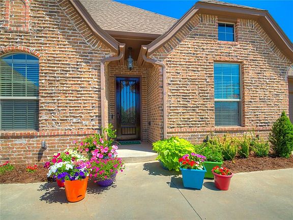All the curb appeal with this beautiful 4 bedroom home with a study. Unwind from the day in your expansive living room with twenty foot ceilings. New carpet was just installed. Six burner KitchenAid gas stove is ideal for preparing gourmet meals for your company. Extra large kitchen island & an open kitchen with tons of cabinet space to keep your organized. Master bath with walk-in shower & whirlpool tub. Relaxing covered back patio with misting system, outdoor TV & cherry red Webber grill plumbed into gas line. Two Lacebark Elms create even more shade in the evenings while entertaining guests. Surround sound is wired in living room & out on the back patio. Fun play house with sand box is already installed. Have peace of mind with In ground storm shelter in garage that fits 6-8. Side load two car garage & third garage with opener is great for storage. In-ground multi-height NBA Spaulding basketball goal is waiting for a game of one-on-one. Full guttering around entire home.