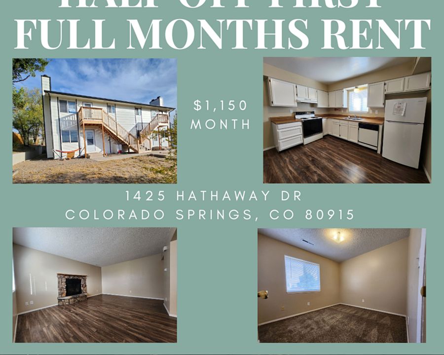 HALF OFF FIRST FULL MONTH'S RENT This inviting 2-bedroom, 1-bathroom unit is located on the upper level of a multi-plex building, conveniently situated near military installations. The home features updated flooring, a cozy wood burning fireplace in the living room, and washer/dryer hookups in the kitchen. Modernized light fixtures, contemporary neutral tones enhance the aesthetic, modernized carpets while LVP flooring throughout provides both style and easy maintenance. Additional storage units are available at the rear of the property for your convenience. Parking options include both rear lot and street parking. This property is located in School District D49 and offers easy access to Cherokee Ridge Golf Course, Powers Corridor shopping centers, Hwy 24, and various hiking and biking trails. Features and Amenities: - Wood burning Fireplace - Storage included in rent - Lawn care included in rent - Washer/Dryer hookups in unit - Small front deck Utility Information: - Lessor will bill the tenant $20/month for trash services. - Tenants are responsible for individual electric and gas accounts, payable directly to Colorado Springs Utilities. Account numbers must be provided at lease signing. - Monthly billing for water and sewer will apply, plus a $5/month administrative fee. Restrictions: - No smoking or marijuana cultivation permitted on or around the premises. - Dogs and cats are welcome! A pet deposit of $150*and a pet rent of $35/month per pet will apply. - Dogs must be under 45 lbs.