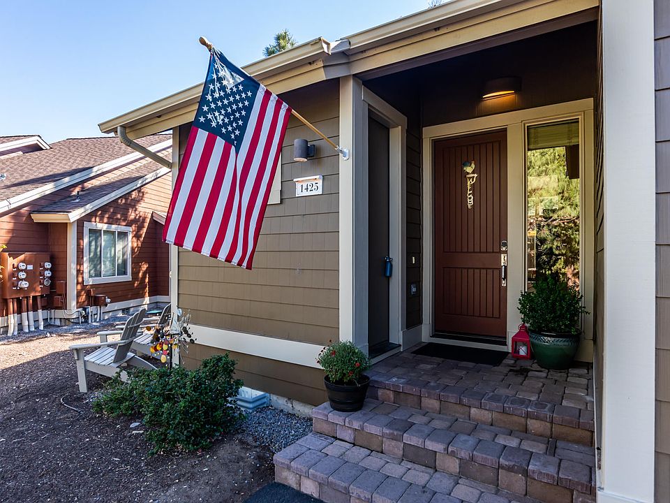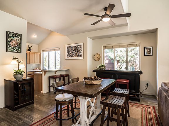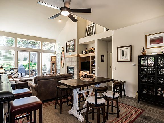 Come spoil yourself & enjoy all that Creekside Village at Eagle Crest has to offer! This single story corner lot, 2 bedroom, 2 full baths, 1419 sf townhome offers a great room concept w/ vaulted ceilings, floor to ceiling windows, new flooring throughout, gas fireplace, kitchen w/ breakfast bar, and built in entertainment center. Master suite w/ tile floors, private sliding glass door to back patio, spacious master bath w/laundry closet, dual vanity, soaking tub, walk-in shower, enclosed water closet & walk-in closet. Extra storage in the front & back of home, ground level paver back patio, smart thermostat, electronic front door lock & two assigned parking spaces. Resort living at its best! The award winning Eagle Crest amenities w/ three 18 hole golf courses, driving range, tennis/basketball courts, 3 sport & fitness rooms, pools & miles of trails. Call today for your private showing!