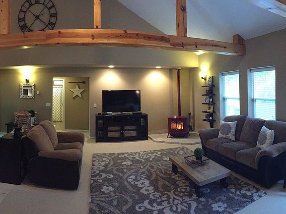 - Fireplace features: wood stove
