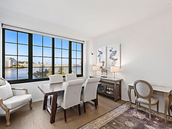 North facing with direct water views! Come home to this spectacular 2 bedroom, 2 bathroom home in one of Hoboken's most exclusive and sought after buildings. Remarkable for its impeccable layout, residence 4I will greet you with peace and tranquility. Flooded with natural light, and wide plank hardwood floors. Primary suite is completed by a huge walk-in closet, en-suite bathroom with double sink vanity and glass enclosed shower. Second bedroom features a custom designed walk-in closet, featuring a work space with built-in desk and shelving. Open floor plan with an expansive living and dining area that is perfect for entertaining. The fully equipped gourmet chef's kitchen is highlighted with top-of-the-line Thermador appliances, paneled dishwasher, five-burner gas cooktop, built-in refrigerator and slide-out microwave accented by the sleek quartz countertops and island with breakfast bar. Custom built-in with beautiful lighting completes the living room. Stunning light fixtures and fully outfitted laundry room that also serve as great storage, fully equipped with a full size washer/dryer. This is one of Hoboken's newest luxury buildings, which features 24 hour concierge, gym, pool, children's playroom and rooftop terrace equipped with grills, fireplace and breathtaking, direct views of NYC. Commuting could not be easier via the ferry and 126 Bus to NYC, which are both just steps away. The building also provides private shuttle service to and from the PATH. Just a block from express buses that service both New York City's Port Authority and Hoboken Terminal ( NY Waterway Ferry, Light Rail, NJ Transit), and just steps to the NY Waterway Ferry, Washington Street, the Hudson River Waterfront Walkway and an exciting array of boutique shopping, dining, coffee shops, entertainment, farmers' markets, parks/playgrounds, schools, daycare facilities, Hoboken Public Library and open green spaces that make our mile square city so special. Rental parking available nearby.