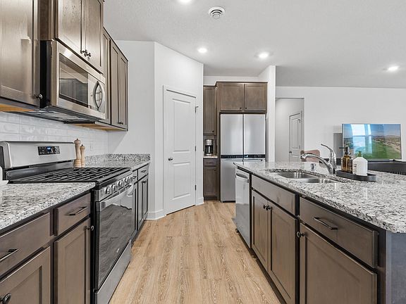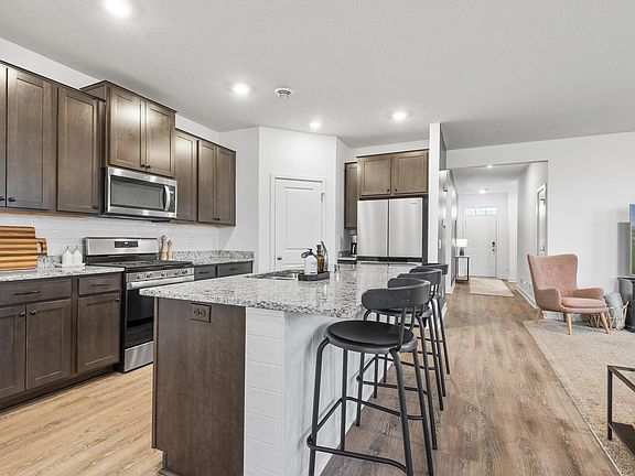 Built in '21, this beautiful one-and-a-half-story home was crafted to cater to modern living. It stands out as the most expansive home in the new development, boasting an open concept design with a versatile loft area including a spacious family room, an extra bedroom & a 3/4 bathroom. This home combines functionality & sophistication, showcasing granite countertops, 2 primary bedroom walk-in closets, dual vanities & smart technology. The interior has been updated with timeless tile accents on the kitchen backsplash, the front of the island & in the bathrooms. As for the exterior, it features a new cedar fence & fast growing Black Hill Spruce trees, providing an extra layer of privacy. This home offers the simplicity of main-floor living, while its location offers the excitement of a nearby walking trail to the Crow River, the charm of a neighborhood park & the ease of a short drive to quaint downtown Delano or the bustling city. Amazing sunset views! Mortgage is assumable at 3.611%.