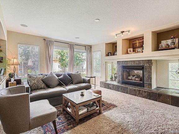 Welcome home to the coziest, homiest, gem in Highlands Ranch. This 3 bed 3 bath home within a cul-de-sac will make you feel right at home as soon as you walk in. To your left, you’ll notice the excellent space for a dining room table, conveniently right next to the kitchen for easy access and entertainment, and overlooks the living room. The kitchen is a wonderful space with SS appliances, fridge, gas range, dishwasher, tile backsplash, microwave, and granite countertops. The carpeted living room is the centerpiece of the home with perfect sunlight beaming in through the large windows, inviting atmosphere, surround sound speakers, open floor plans, and gas fireplace. You’ll want to spend all your time here. The main floor also includes the laundry room, and a ½ bath with an upgraded vanity, sink, toilet, plumbing, fixtures, and lighting. The carpeted 2nd floor includes a ¾ bath with tile floors & upgraded tile shower, a bedroom with a ceiling fan, another bedroom with a ceiling fan & linen closet in hallway, a full-bath with a shower, painted cabinets, and dual sink, and the Primary Suite with a walk-in closet w/ storage shelving, a ceiling fan, and amazing mountain views. The unfinished basement is an excellent space to design to your liking, and the grassed backyard is a great, spacious amount of space with mature trees that provide lovely shade. You’re going to love it here!